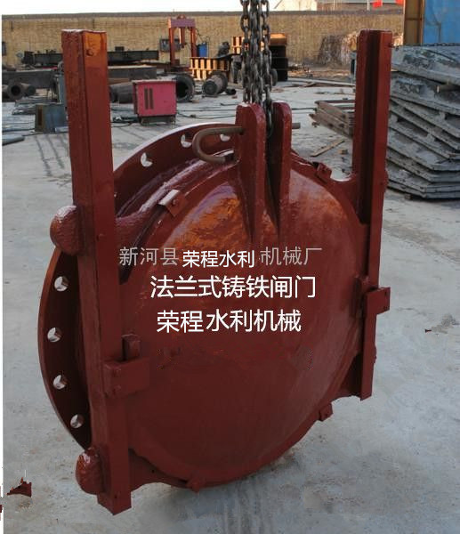 3、法蘭式鑄鐵圓閘門由門框、閘板、導軌、密封條、、吊塊螺母/吊耳和可調(diào)整密封機構等部件組成,其中門框和閘板均由優(yōu)質(zhì)灰口鑄鐵或球墨鑄鐵制成,導軌左右對稱布置且用不銹鋼螺栓定位銷與門框二側(cè)端部連接 (對中小口徑的閘門,其導軌可與門框澆注成一體),導軌長度一般為閘門全開啟高度的1/2~1/3,因而整體結構強度高、剛性高、耐磨、耐腐蝕性好、承壓能力大。